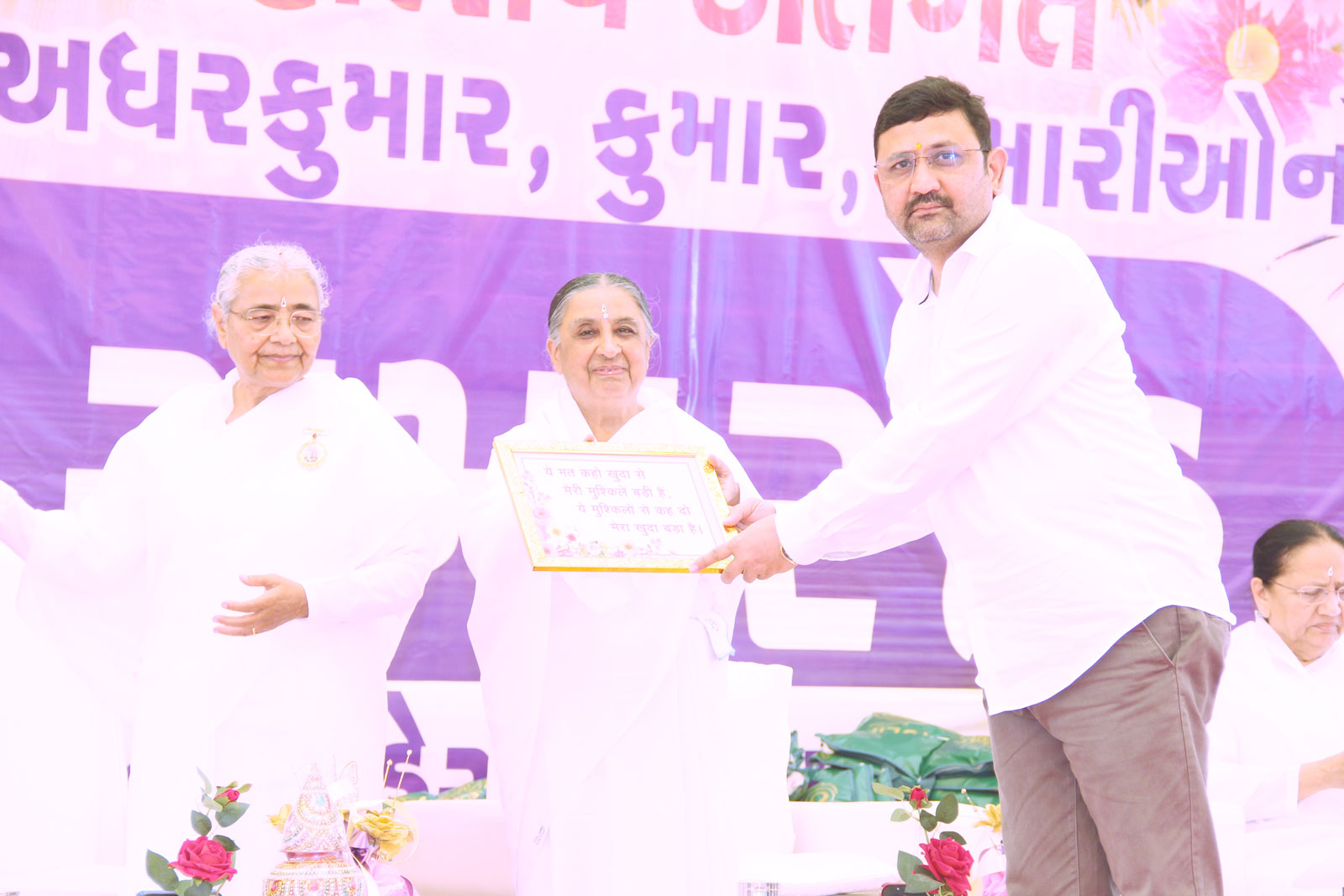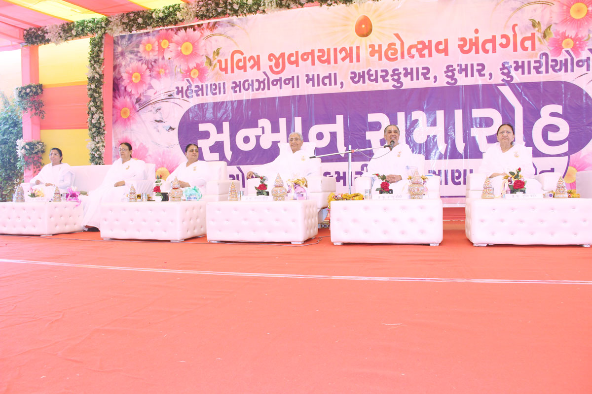 नयन रम्य वातावरण में, खेतों के बीच स्थित ‘एन्जल पार्क’ (रालीसणा-विसनगर) में आयोजित इस सम्मान समारोह में ब्र.कु. सरला दीदी जी ने सभी में उमंग उत्साह भरते हुए कहा “नवरात्री की पूर्व संध्या पर आयोजित पवित्र जीवनयात्रा महोत्सव के अंतर्गत पूरे उत्तर गुजरात से मातायें, अधर कुमार, कुमार, कुमारियाँ ऐसे विशिष्ठ रत्त हैं जिन्हों ने कीचड़ में रहते हुए अपने जीवन को कमल पुष्प समान पवित्र बनाया है। परमपिता परमात्मा से प्राप्त हुई ज्ञान-योग की शक्तियों से अपने जीवन में सुख, शांति, समृद्धि की अनुभूति खुद भी कर रहे हैं और औरों को भी करा रहे है। गृहस्थ व्यवहार में रहते हुए, अनेक चुनौतियों का सामना करते हुए यह सिद्ध कर बताया है कि घर में रहते हुए भी व्यवहार एवं परमार्थ का बैलेंस रख सकते हैं।”